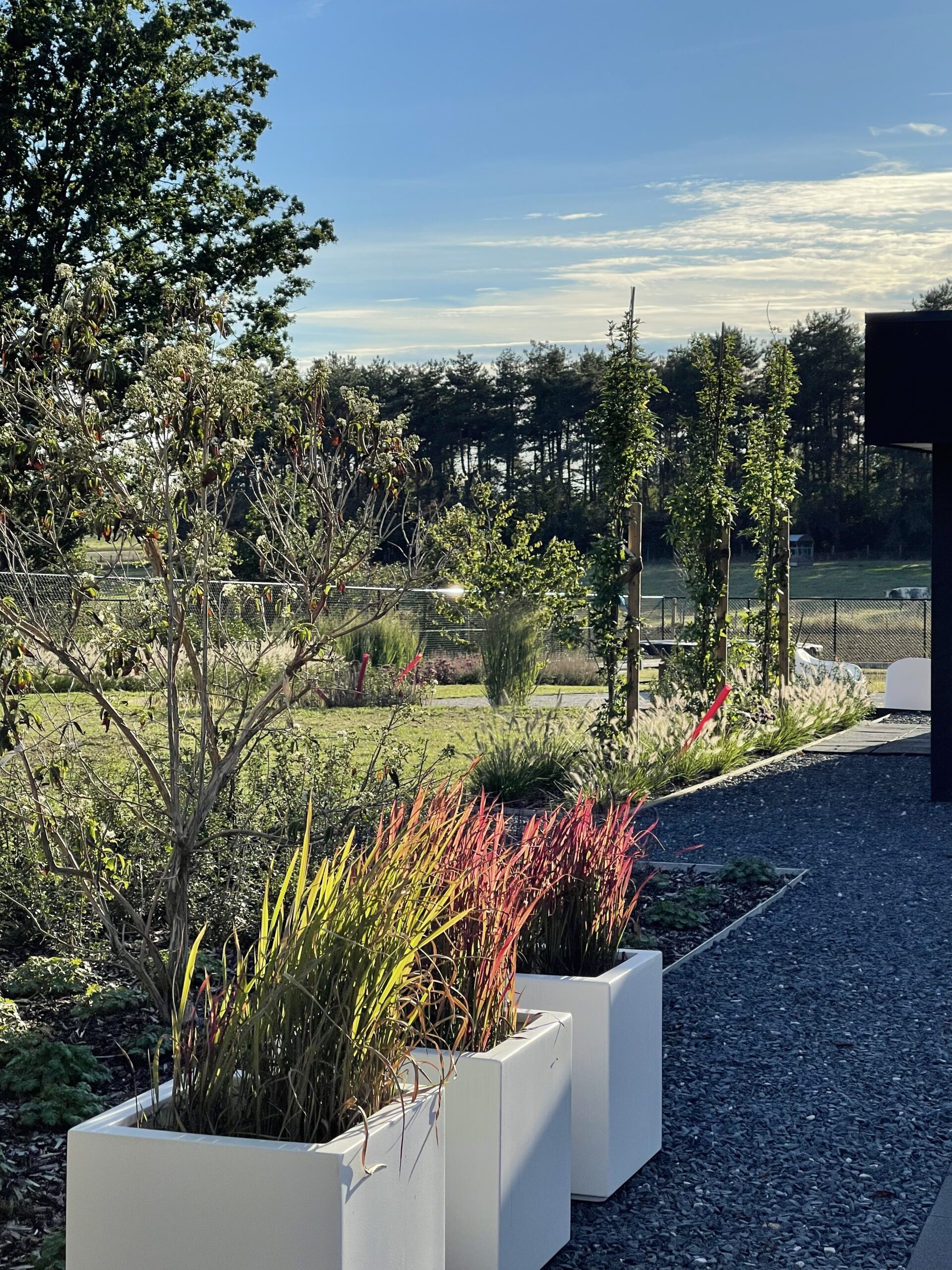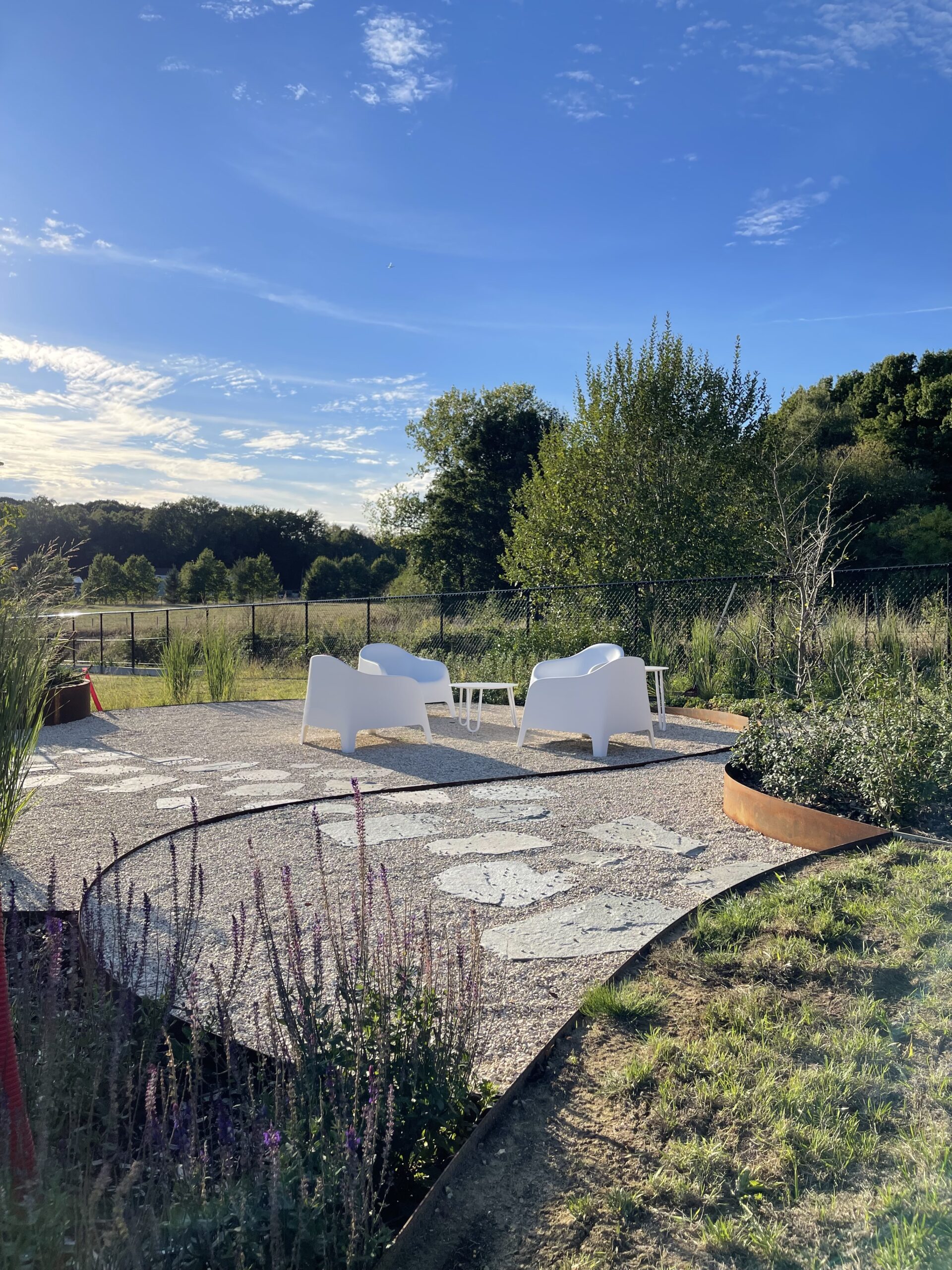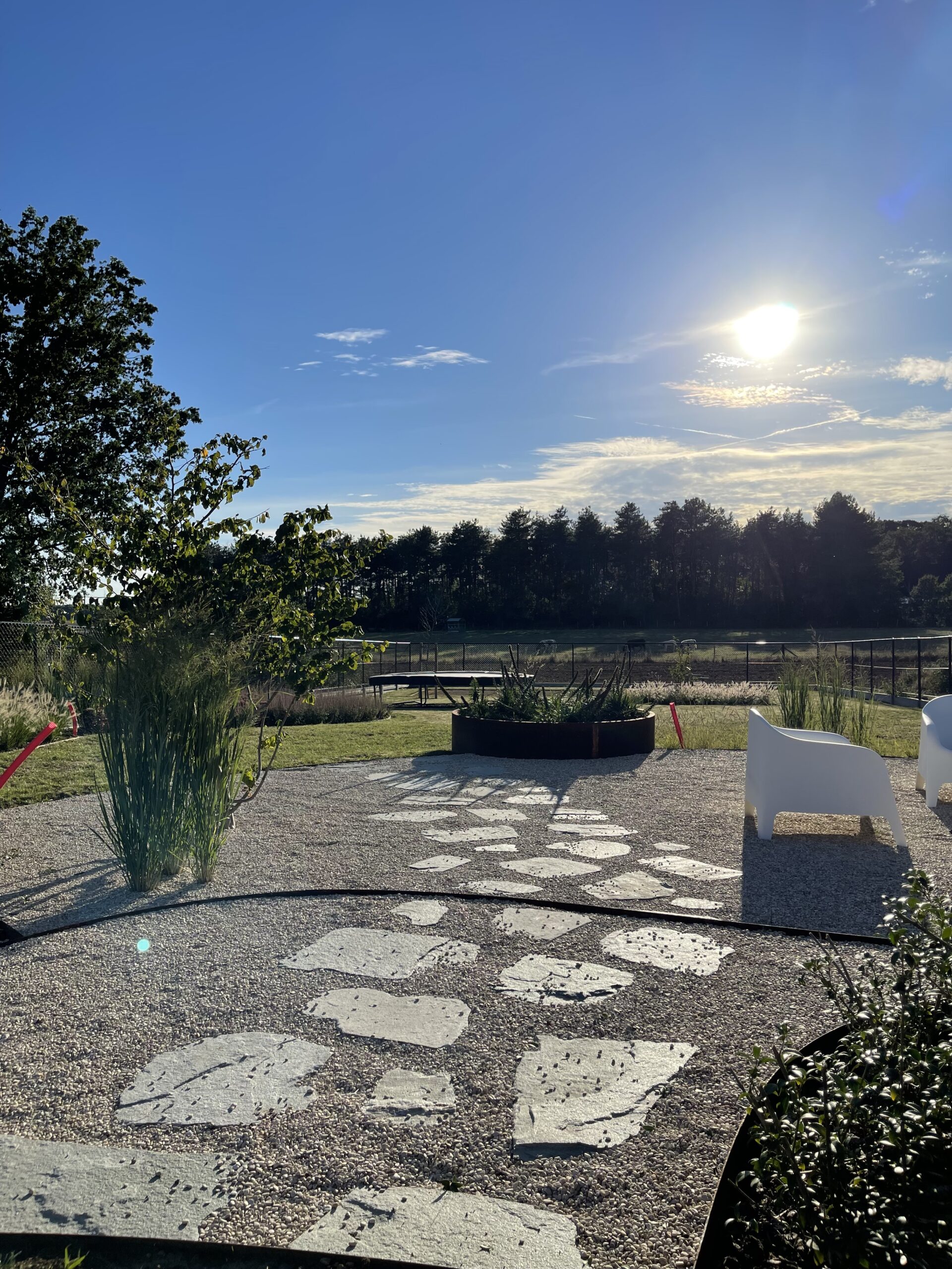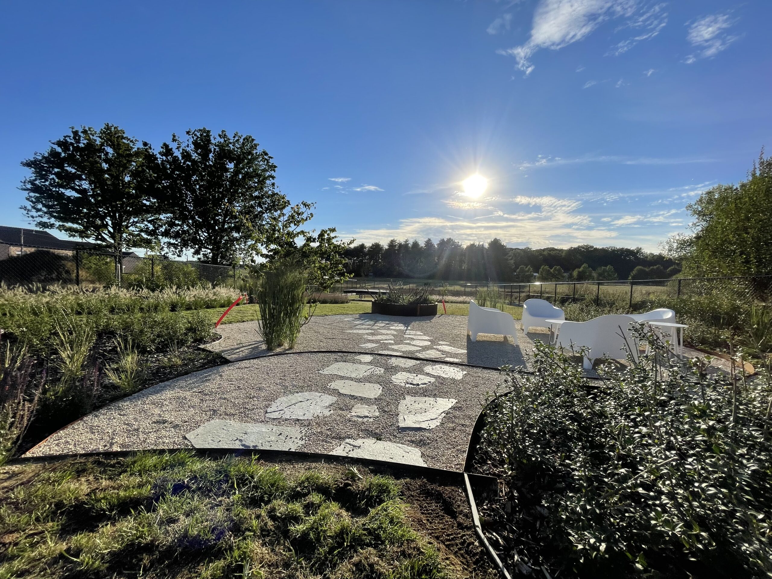Voor deze tuinaanleg in Tielt-Winge realiseerden we een open en speelse tuin met zachte, organische lijnen. Het grindterras met stapstenen vormt het centrale punt en loopt vloeiend over in de omliggende beplanting. Met cortenstalen borduren, siergrassen en meerstammige bomen creëerden we een natuurlijke overgang tussen woning en landschap. Door de doordachte indeling en het gebruik van duurzame materialen krijgt de tuin in Tielt-Winge een rustige uitstraling die perfect aansluit bij de omgeving.